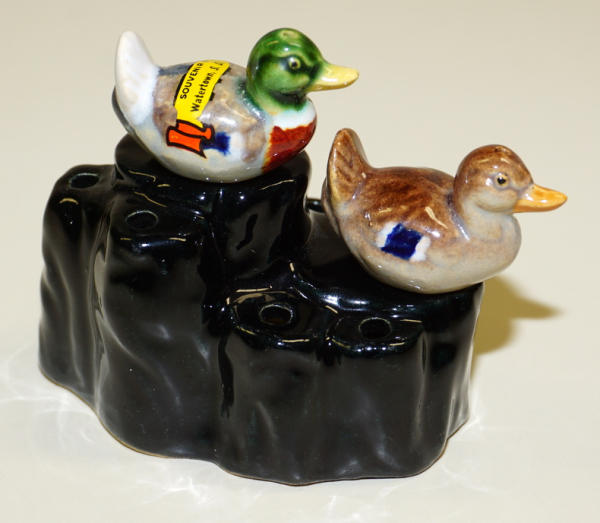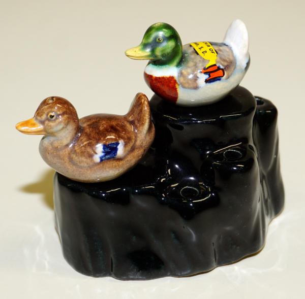 stand is 3.5" long, Drake has a "Souvenir of Watertown, SD" decal, neat set, ducks are not permanently attached, sells as a set