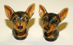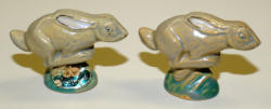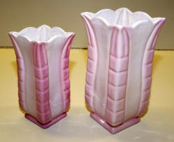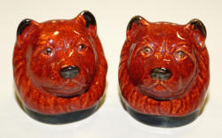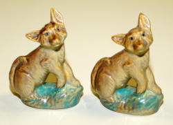 each 7.25" tall, lighter colored one has a tiny flake in the glaze, 2x the money