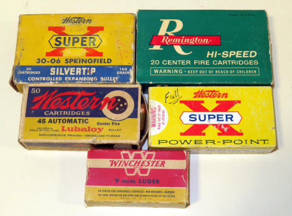 probably 85+ rounds in all; boxes have some wear; sell for one money