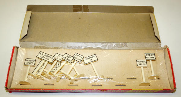 plastic small signs, neat graphic box, box has some wear