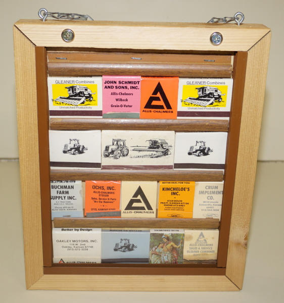 Great collection made up from dealers all over the Midwest! Some duplicates, some with tractor graphics, some nice, some with wear, all in a heavy, custom made showcase to hang on the wall, great set, all to go