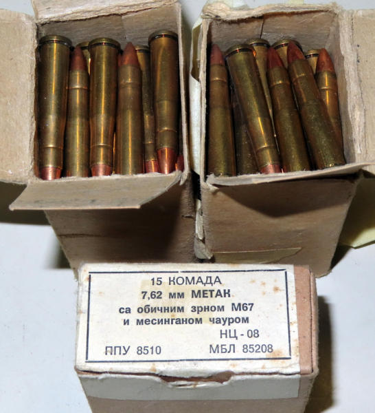 15 rounds of 7.62; not positive on caliber of other ammo, looks like possible 30carbine, close to 50 rounds of that; sell for one money