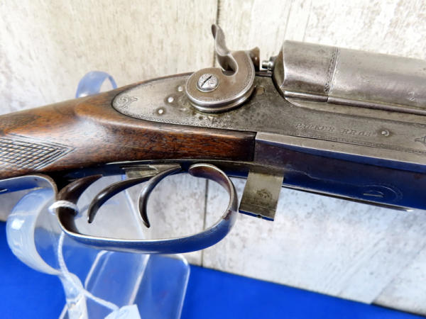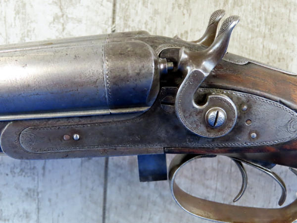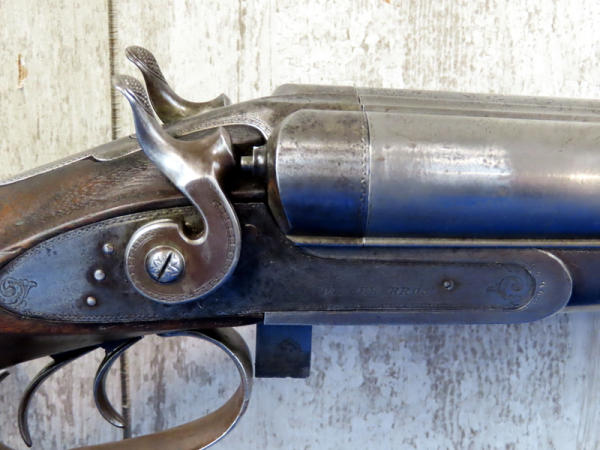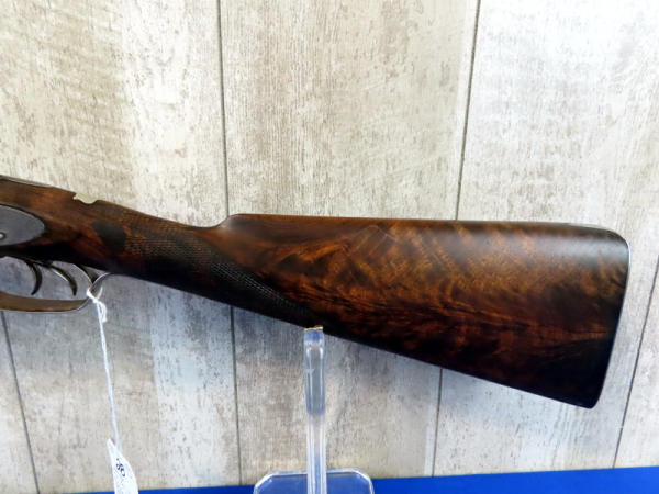BLE; original; 28" BBLs; bluing thin; easy break action w/the release on bottom side of receiver; two triggers; factory scroll engraving on receiver & hammers; both mechs work; very nice wood w/checkering and great wood grain on stock; Damascus Steel BBLs; receiver is marked w/SN#F.9.R. B2852 & bottom tang has No.2867; great collector shotgun! No transfer needed