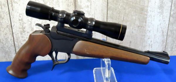 BLE; nice; 10" Oct. BBL; has some small spotting on the barrel; wood grips & forearm; Leupold M8-4x scope; easy break action; made in USA; SN#G15103
