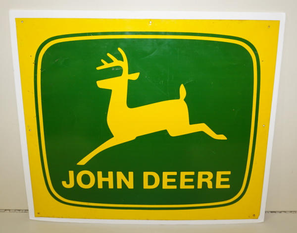 18"x21", great color, few light scuffs and scratches, has been mounted to a foam board, but will come off if you take a little time; I looked at this sign pretty hard and I think it's 100% a legit JD sign that we have never seen, no maker's mark