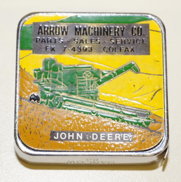 1.5" long, super graphics, the JD side is pealing slightly, but still nice