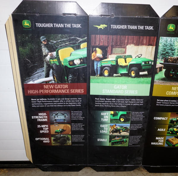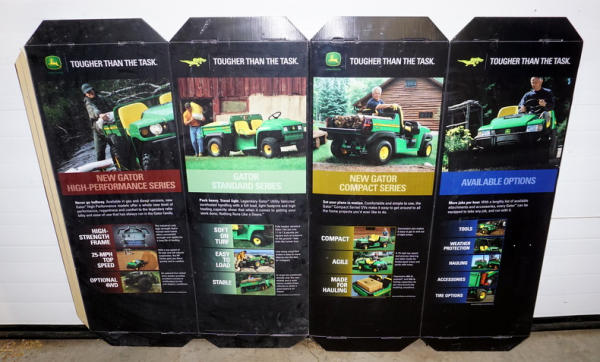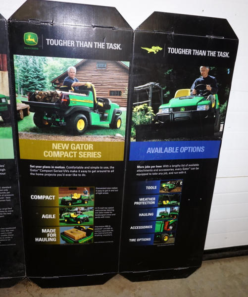 folds into a store display that is about 4' tall, 12" square, some general wear, made of corrugated plastic