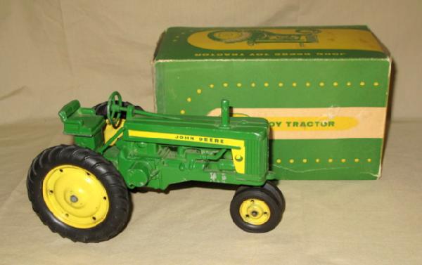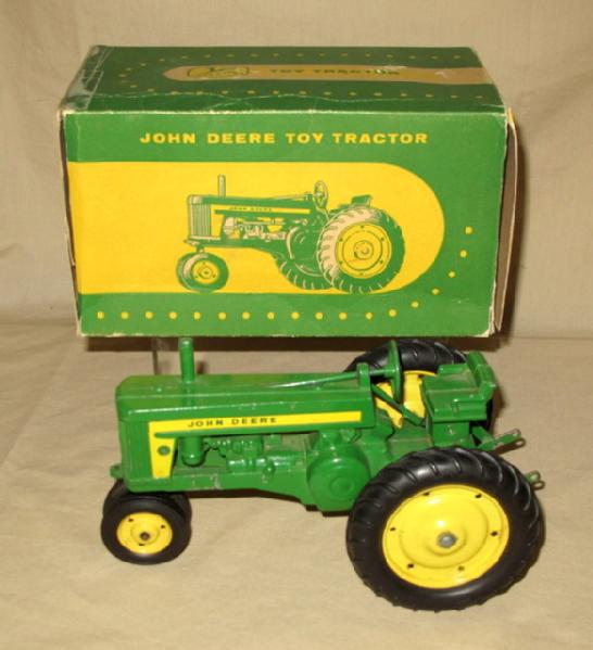 nice original, toy is 92% or so, a few light scratches on the frame and on the 3pt hitch, box is complete, one flap has been taped, has good color, but some light crushing and general wear