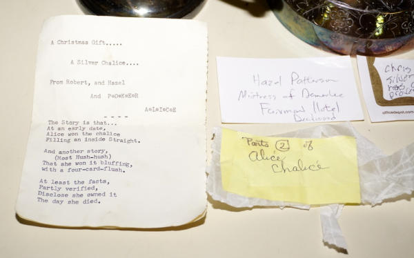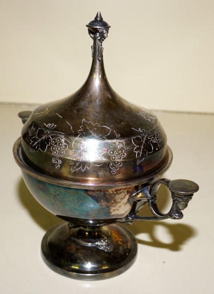 Silver plate with decorative handles includes provenance; about 9" tall, 10" wide at the handles, great original patina, comes with a letter inside explaining how she won it, a real piece of Deadwood & South Dakota history!