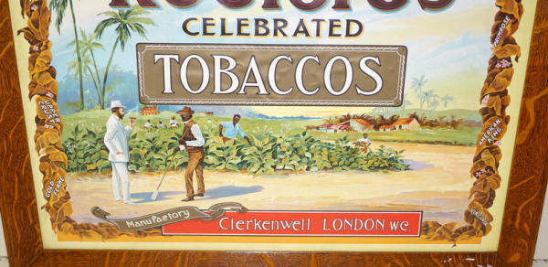 23"x29", vivid colors, super detail, made in London West Virginia, awesome piece of early tobacco & Black Americana advertising