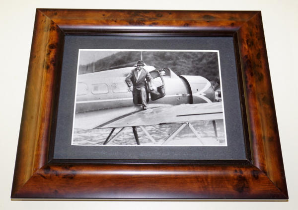 Rare photo of Will Rogers getting into his plane apparently shortly before his death in a airplane crash, framed and matted 11.5" x 9.5"; possible reprint