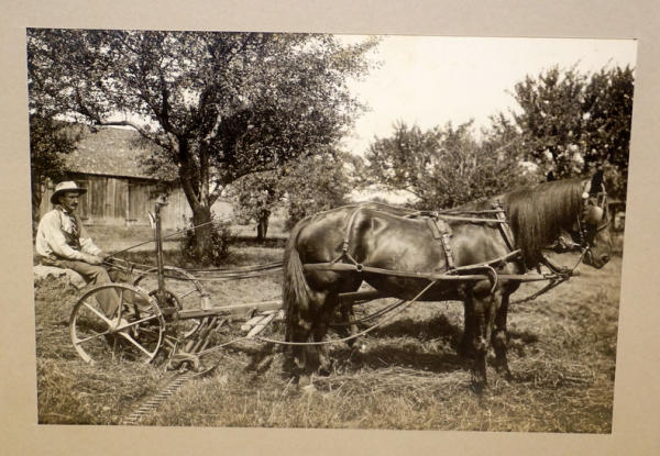Original photos, beautifully framed the sickle is down ready to go to work, 11" x 12.25", Great example of probable early SD agriculture