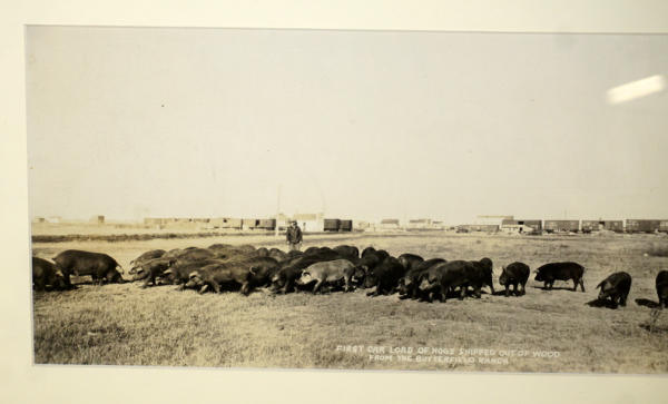 Fascinating Rise Photo of hogs shipped out of Butterfield Ranch, Wood SD in excellent condition; framed and matted 21" x 10.5"