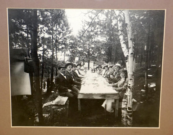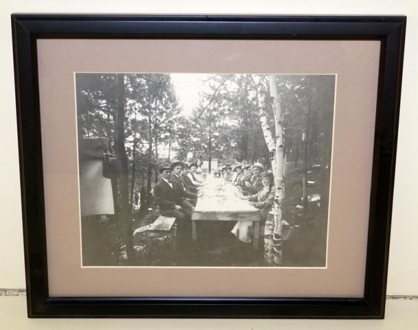 Picnic of well-dressed people among the Pines and Aspen with their chef; Beautifully framed and matted, 13.5"x11.5"