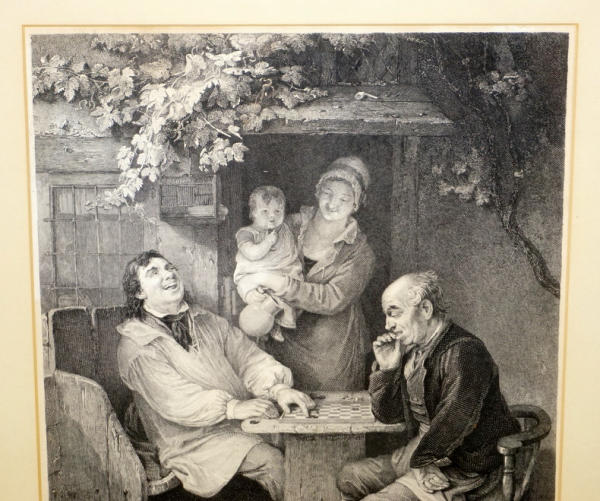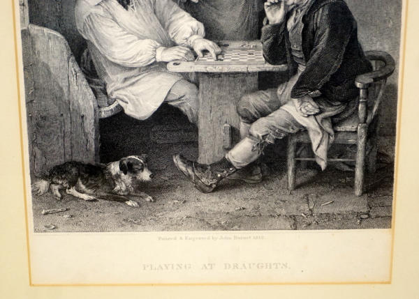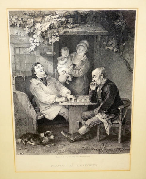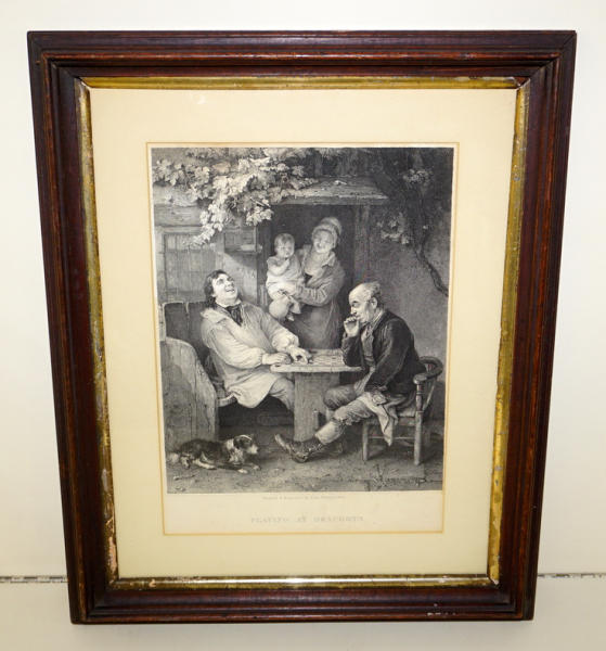 Probably British lithograph of 2 chess players ‘Playing at Draughts’ having fun; original and very unique, 17" x 21.5"