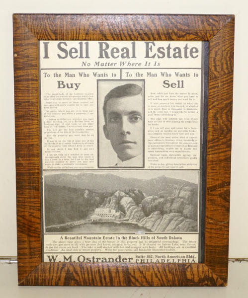 WM Ostrander, Philadelphia ad to sell Sylvan Lake Lodge; a real piece of BH history, original, 9.5" x 7.25" nicely framed, from a McClures Magazine