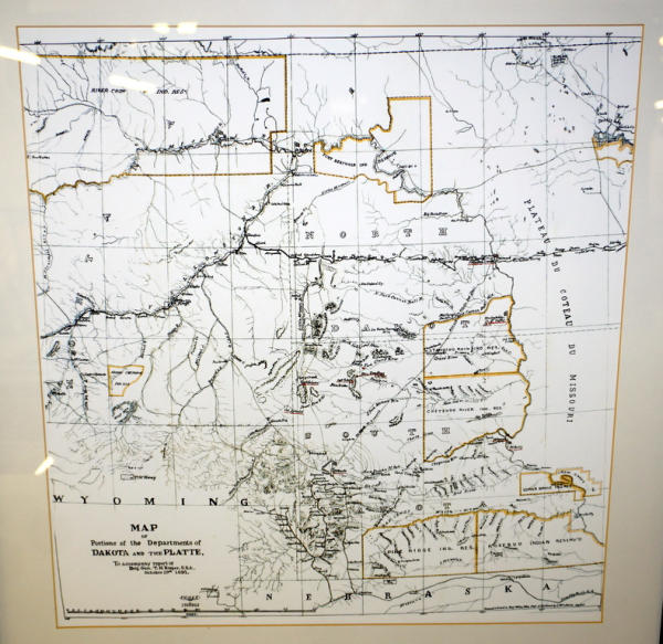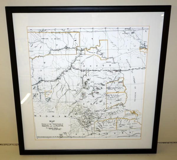 Hand drawn reproduction accompanying Brig Gen TH Ruger 1891; shows major Indian reservations at that time together with interesting names of waterways; a real conversation piece, 22" x 23"