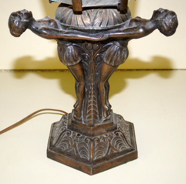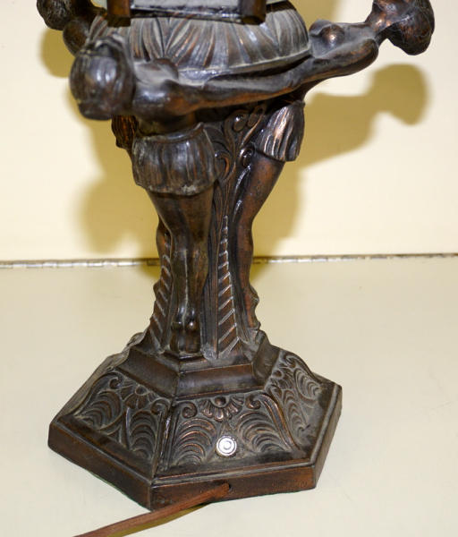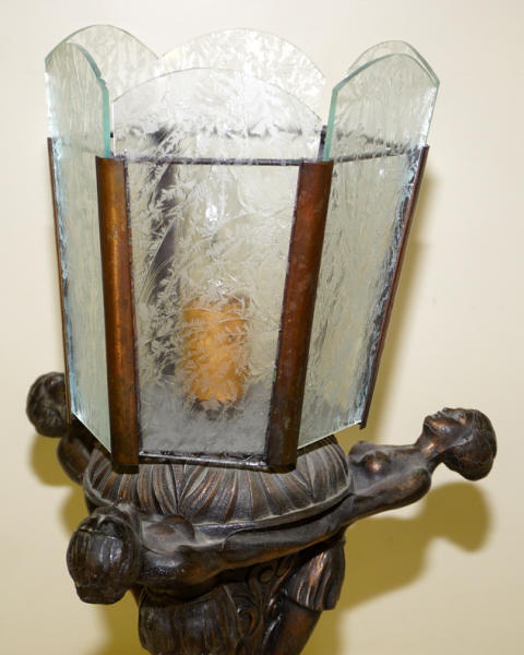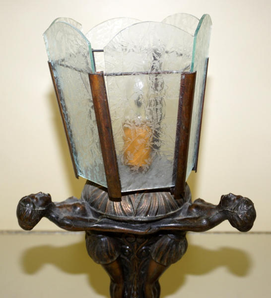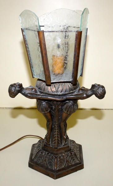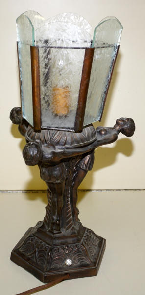 metal and glass excellent, but dirty; works; very attractive, 17" tall, 7" diameter at widest
