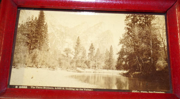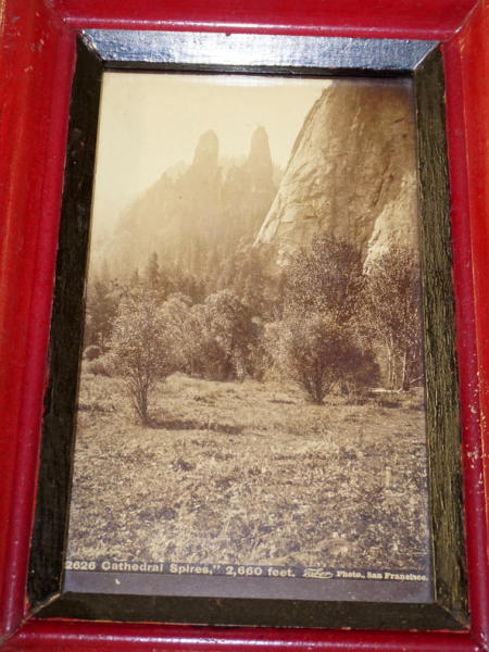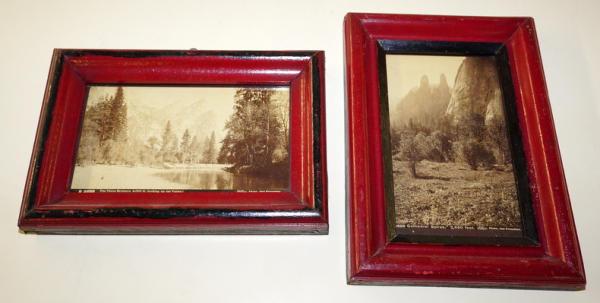 Original, beautifully framed in probably original frames photos of The Three Brothers and Cathedral Spires, Yosemite Valley by Taber Photo Co., San Francisco; 11.25" x 7.5" and 11.25" x 8"; sells as a pair