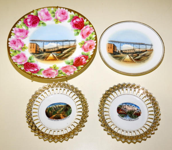 some are German made; imported for RL Pringle, Lead; scenes of the three tracks, Lead; Sylvan, Cathedral Spires, perfect condition range in diameter from 5" to 8 “; sells as a lot