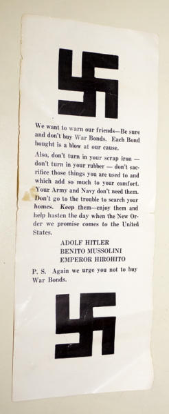 Excellent condition, uses reverse psychology to encourage people to buy war bonds, very interesting and original, 9.75"x4", light paper