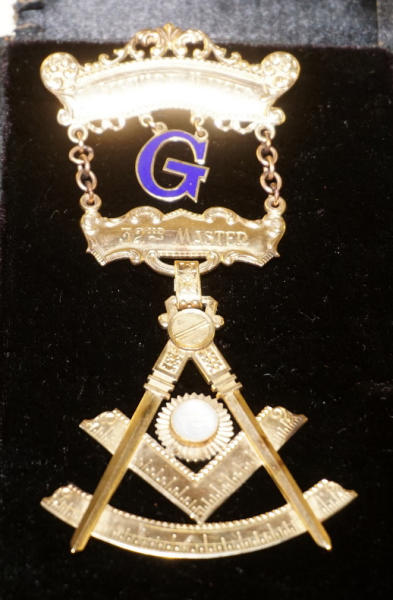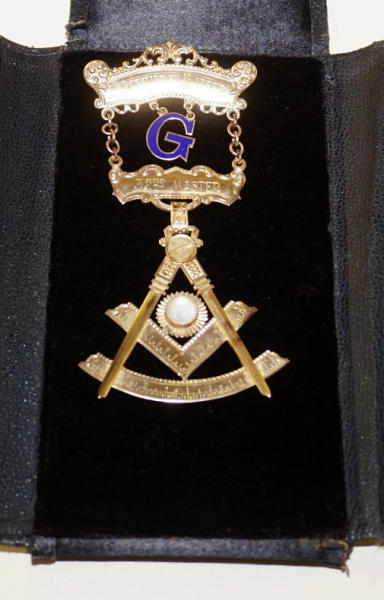 order of mirth medal engraved and elaborate; includes case, 3.75" tall plus the case