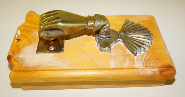 Brass and complete; 9.25"x4.25", mounted to a scrap piece of wood for display only