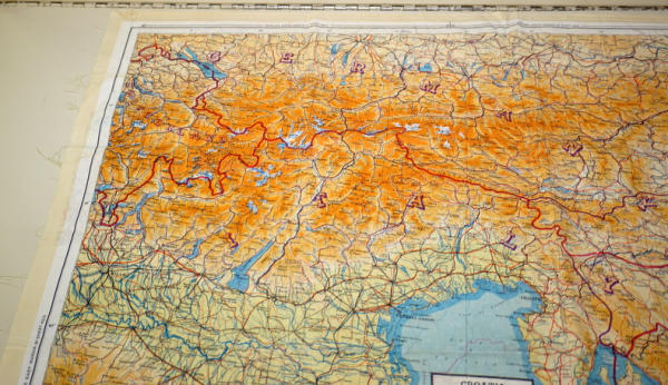 Cloth, original condition, details Germany Croatia Montenegro Slovakia Italy Switzerland Hungary with routes, excellent graphics, neat piece