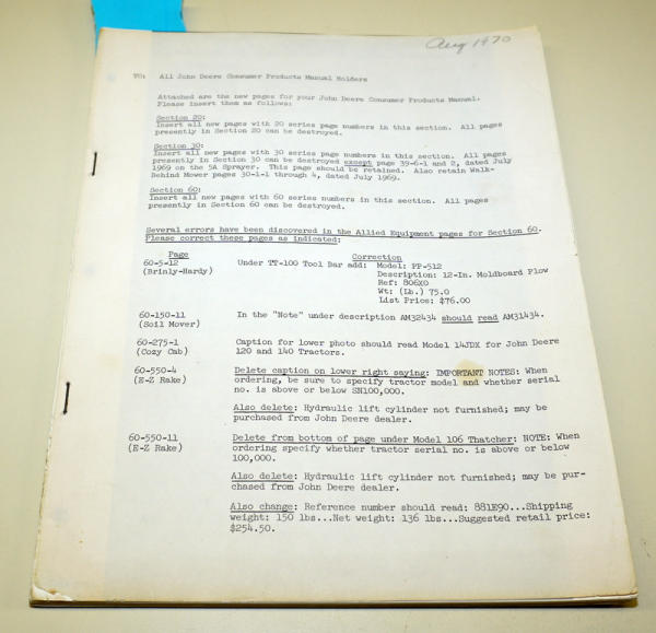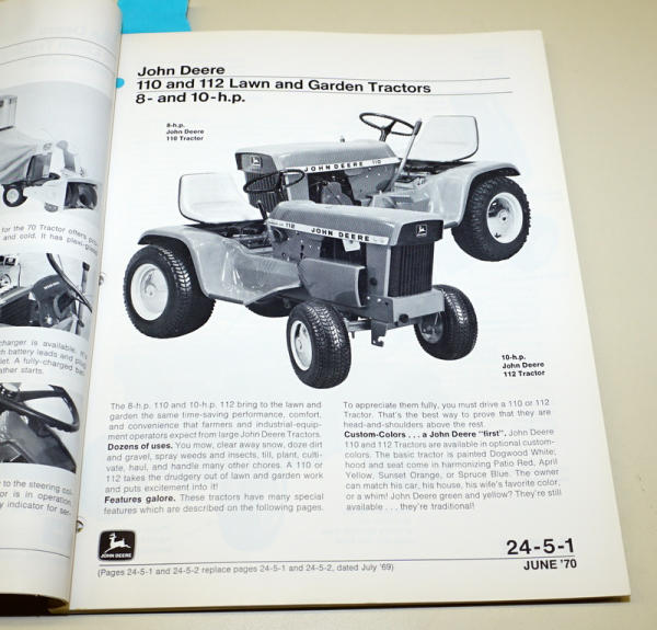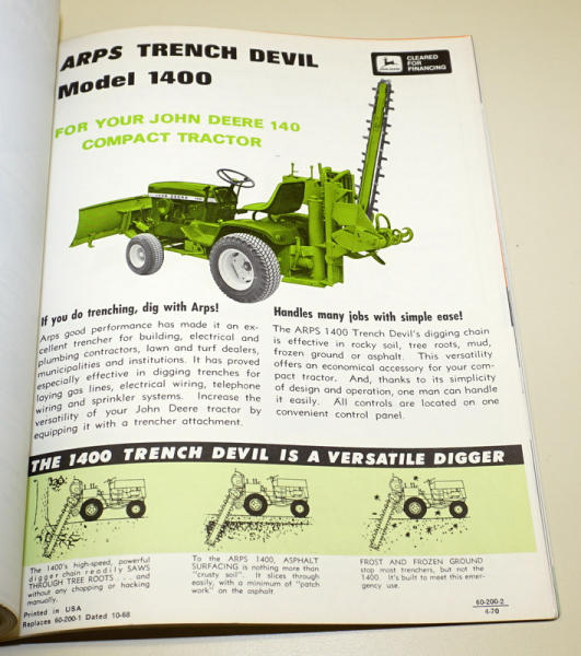 100+ pages, full of nice sales pages on the #70, #110, #112, & #140 L&G Tractors plus lots of implements too, stapled, no binder, nice piece