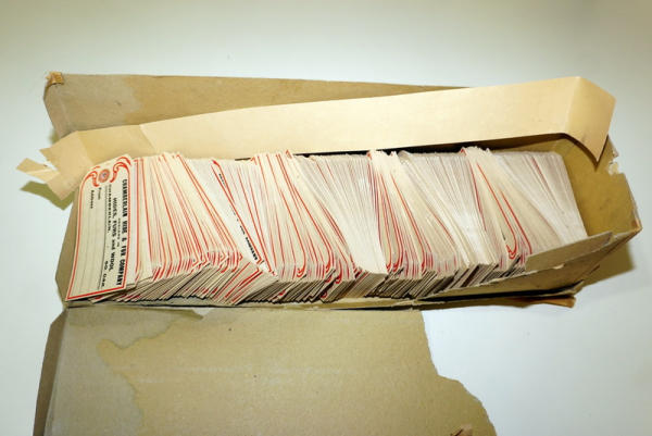 NOS partial box, looks to be around 500 5" long tags in the box; box is rough, but tags are nice, all to go
