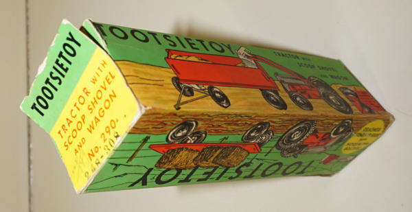nice color graphics, no toys, box is 11" long, has some damage to the end flaps, overall rates 7 condition