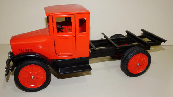 about 26" long, 11" tall to the top of the roof, no bed, good piece to customize