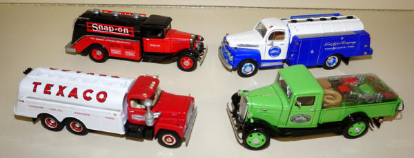 larger trucks are 1/24th scale I think, no boxes, need cleaning, 4x the money