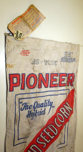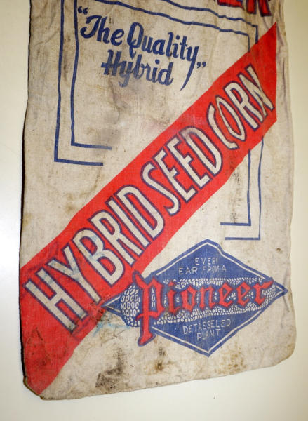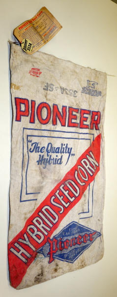 used sack, has soiling and wear, unique still having the fence row tag still attached