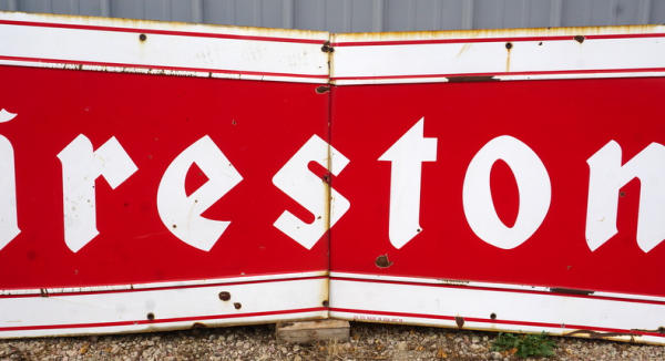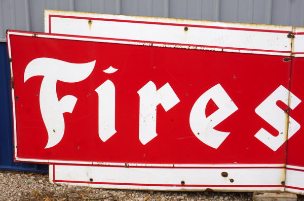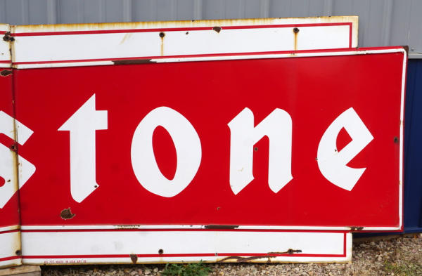 made up of two 4'x6' panels, dated 1970, has some chips and general wear, but overall good color, large & impressive sign; no shipping, pickup only, rates 7.75 condition