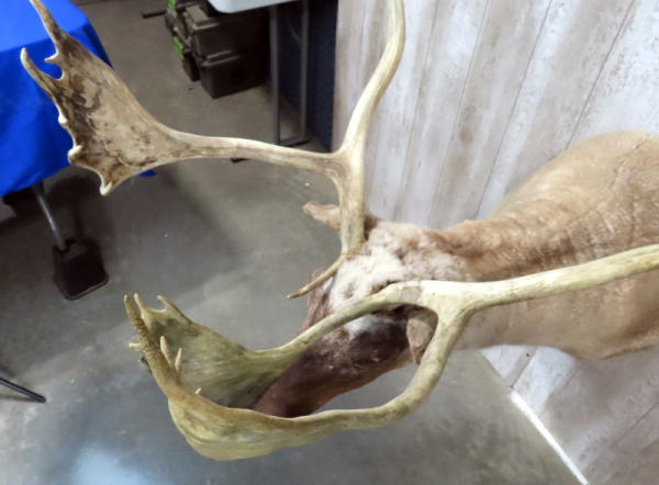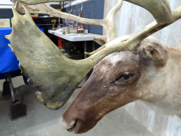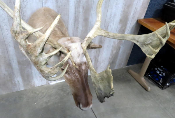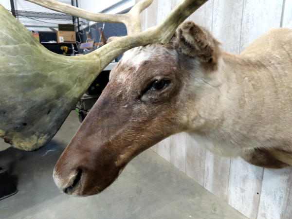 "GFE"; Very large caribou, probably the largest one we've sold (we've had about 6 in the last 2 years); approx. 48" from bottom of neck to tip of antlers; widest part of antler is 38" from tip to tip; sticks out 40" from the wall!; great looking mount; NO SHIPPING, local pickup only