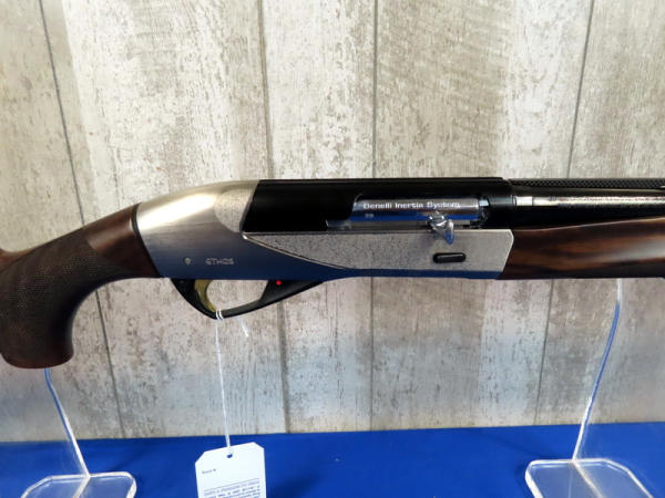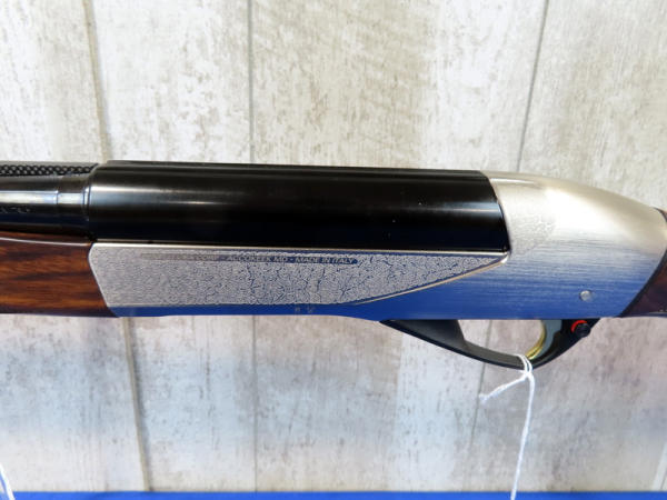 25.5" VR-BBL; mint & unfired; extremely lightweight shotgun! Factory scroll engraving on stainless receiver; nice walnut checkered stock; gold trigger; 2.75" & 3"; includes several chokes; factory hard case; hy-vis front sight; Italy; SN#X087661X; A70