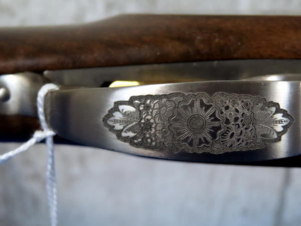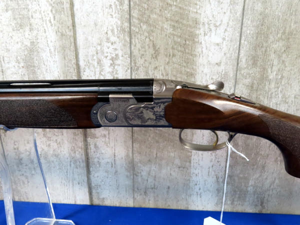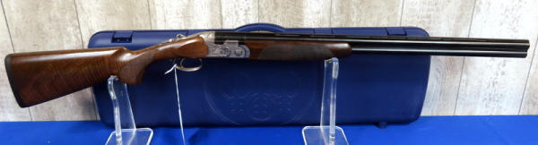 mint & unfired; 26.5" VR-BBL; break action is stiff from never being used; single gold trigger; beautiful checkered wood stock; highly engraved stainless receiver; 3"; screw-chokes; factory hard case; Italy; SN#F89970X; A80