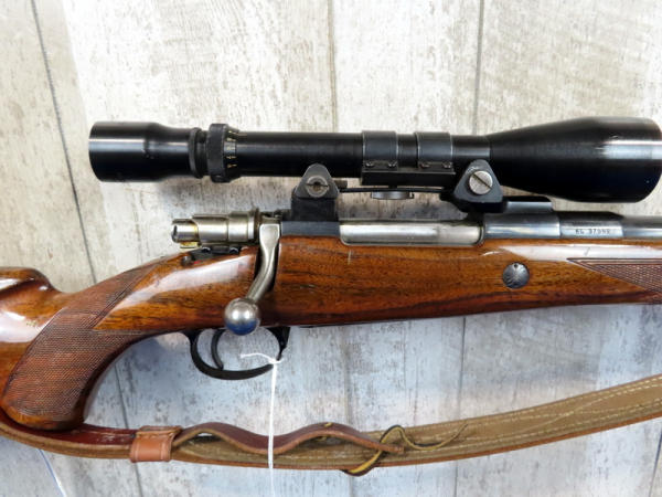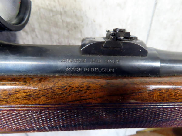 22.5" BBL; smooth action; leather sling; B&L Balvar 8 scope; wood has field marks; Belgium; SN#6L37552; A8