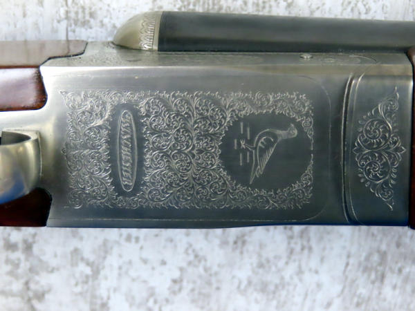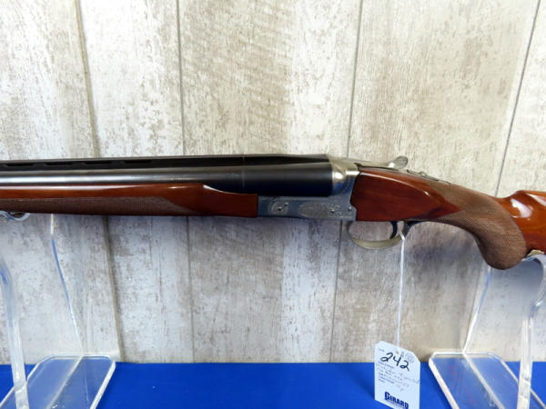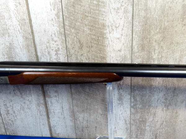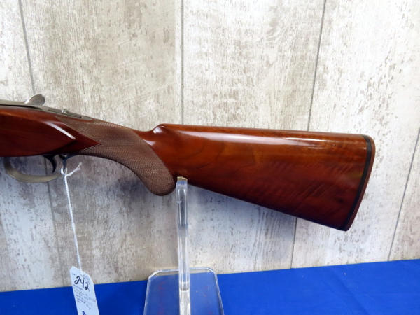 "GFE"; 26" VR-BBLs; stainless receiver w/factory scroll engraving; has pigeon engraved on bottom for receiver; single trigger; easy break action; wood is very nice w/a few minor marks from use and storage; 3"; Left-MC & Right-IC; Japan; SN#PWK004937; A30