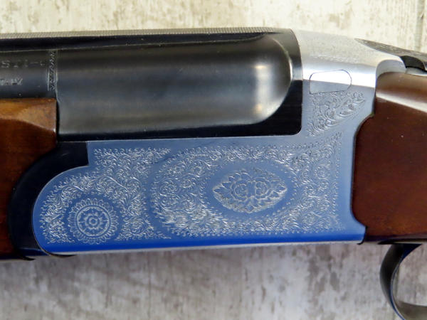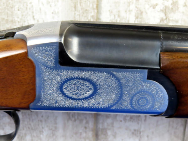 28" VR-BBLs; easy break action; highly engraved stainless receiver; single gold trigger; nice wood checkered stock; 3"; screw in chokes; Italy; SN#B07633; A11
