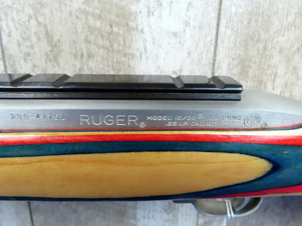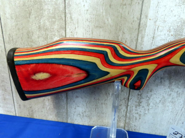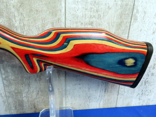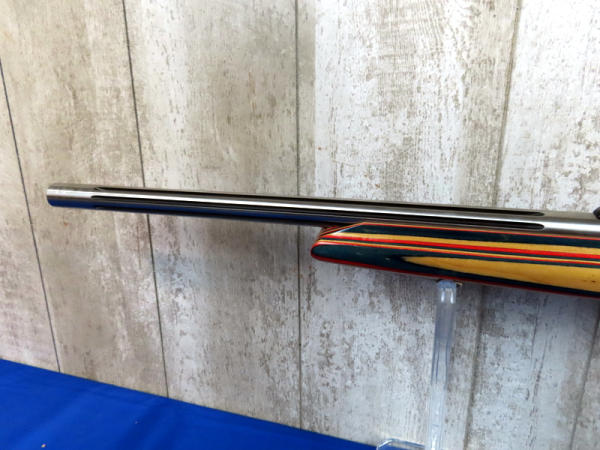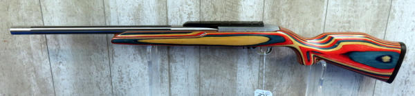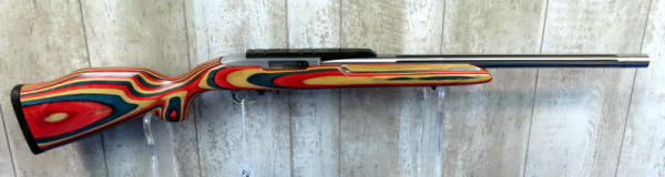 21.5" Stainless Fluted Heavy Barrel, has Warrior head graphic, not sure what brand that is; Red, Blue & Wood color stock; stainless receiver; picatinny rail; removable magazine; very nice and cool looking gun!; USA; SN#238-41751; A60