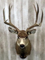 "GFE"; nice looking mount; approx. 33" from bottom of neck to tip of antler; points are 10" wide;