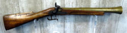 18" Brass Barrel w/Bell muzzle; right side plate is marked "Barnett - London - 1886"; Hammer Mechanism & trigger work; brass butt plate; wood has a few cracks and parts that have been fixed over time; barrel has some dings from use; muzzle is 2.25" in diameter! very early and unique antique firearm! No Transfer needed
