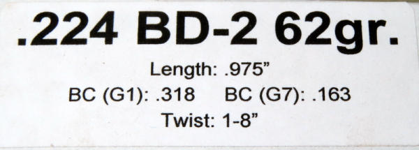 50 total; Length: .975"; BC (G1): .318; BC (G7): .163; Twist: 1-8";