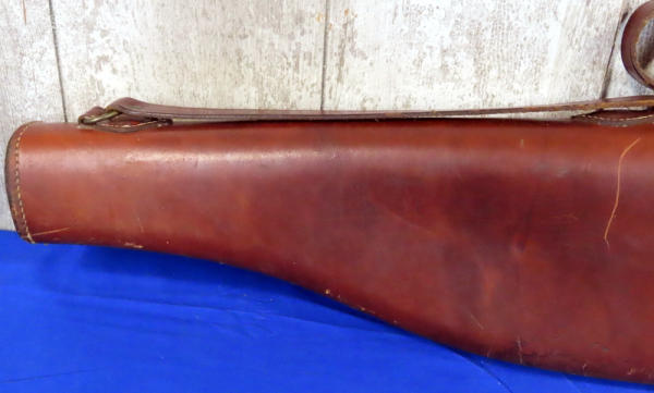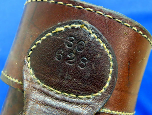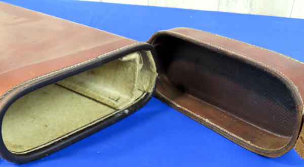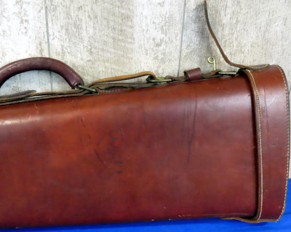 no maker mark; is marked 30-628; overall like new; very nice leather; white felt inside; nice; 32" long