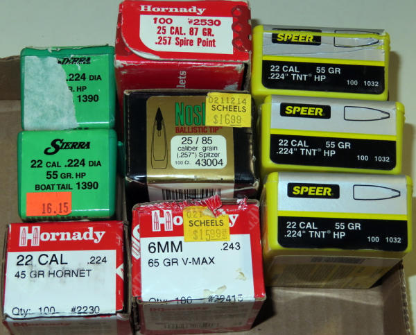approx. 400 .22cal total; 175+ .25cal and approx. 100 6mm; sell for one money