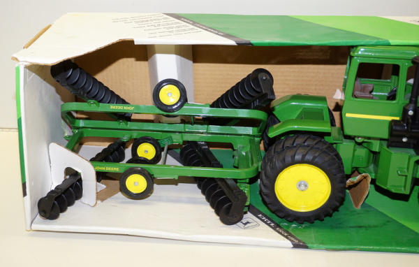 Toys are both mint/near mint condition, box has some general wear, tab is torn out that holds the tractor in place, rates 7.5 condition