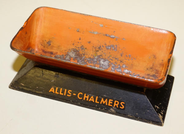 5.5" long, metal tub w/ wood base, has the diamond logo on one side, no logo on the reverse, has some paint loss in the tub and general wear, but a really neat piece I haven't seen before