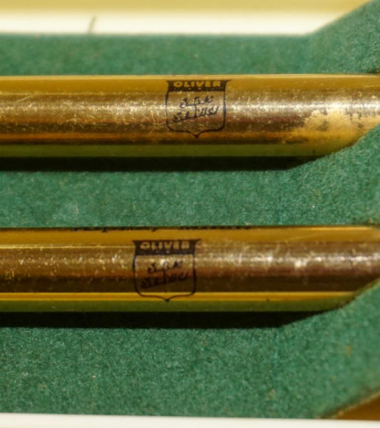 New in plastic case, both have the Oliver Shield logo printed on the pen